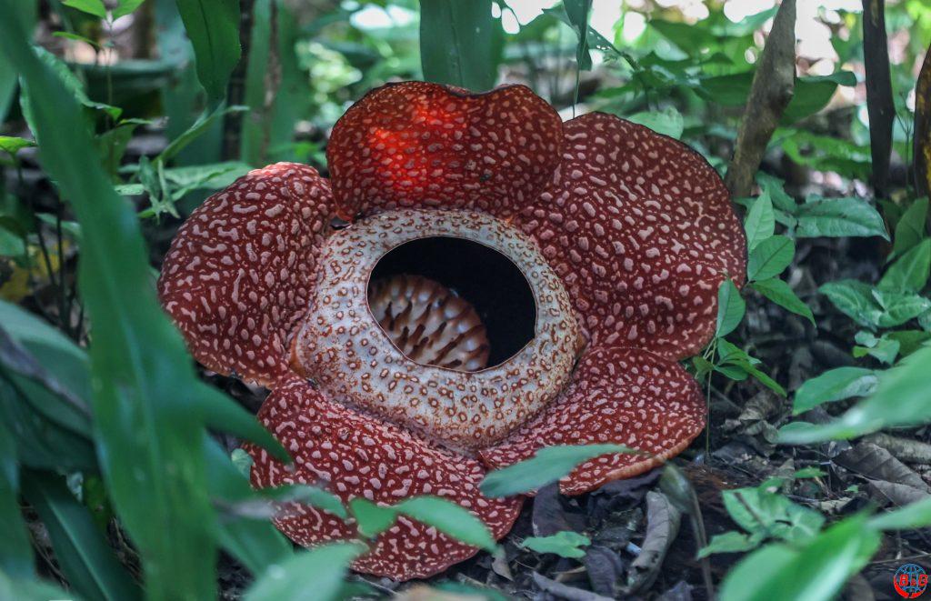 Rafflesia khi nở có đường kính trung bình một mét, còn gọi là hoa xác chết, được nhiều vườn ở bang Sabah trồng cho du khách tham quan.