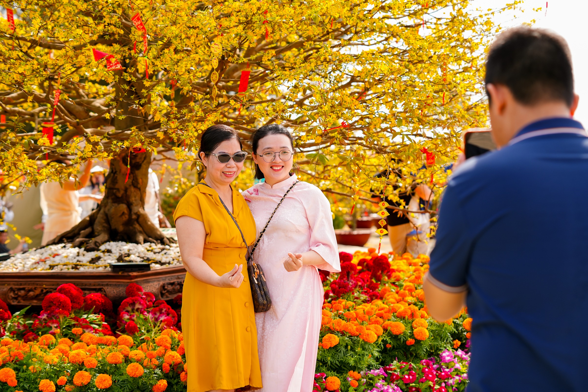 Bên cạnh cây mai 150 tuổi, sự kiện Green Paradise Tet Fest (diễn ra tại trục đường trung tâm khu đô thị Vinhomes Green Paradise) còn trưng bày 300 gốc mai và 300 gốc đào. Theo quan niệm dân gian, mai vàng rực rỡ tượng trưng cho tài lộc, may mắn. Đào hồng gửi gắm những mong muốn gắn kết và hòa thuận, cũng là biểu trưng của sự thịnh vượng, ấm cúng. Nhiều du khách chọn ghé thăm đúng thời điểm hoa nở để lưu giữ khoảnh khắc đầu năm, mong điều tốt lành cho bản thân và gia đình.