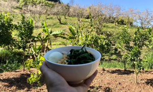 Cả nhóm cắm trại và ngủ đêm ngay tại vườn mơ, để bắt những tia sáng đầu tiên của ngày mới. Nhóm Anh Chiêm có kinh nghiệm hơn 10 năm đi phượt, cắm trại, nên họ chuẩn bị dụng cụ nấu nướng, đồ sưởi ấm và lều bạt đầy đủ.