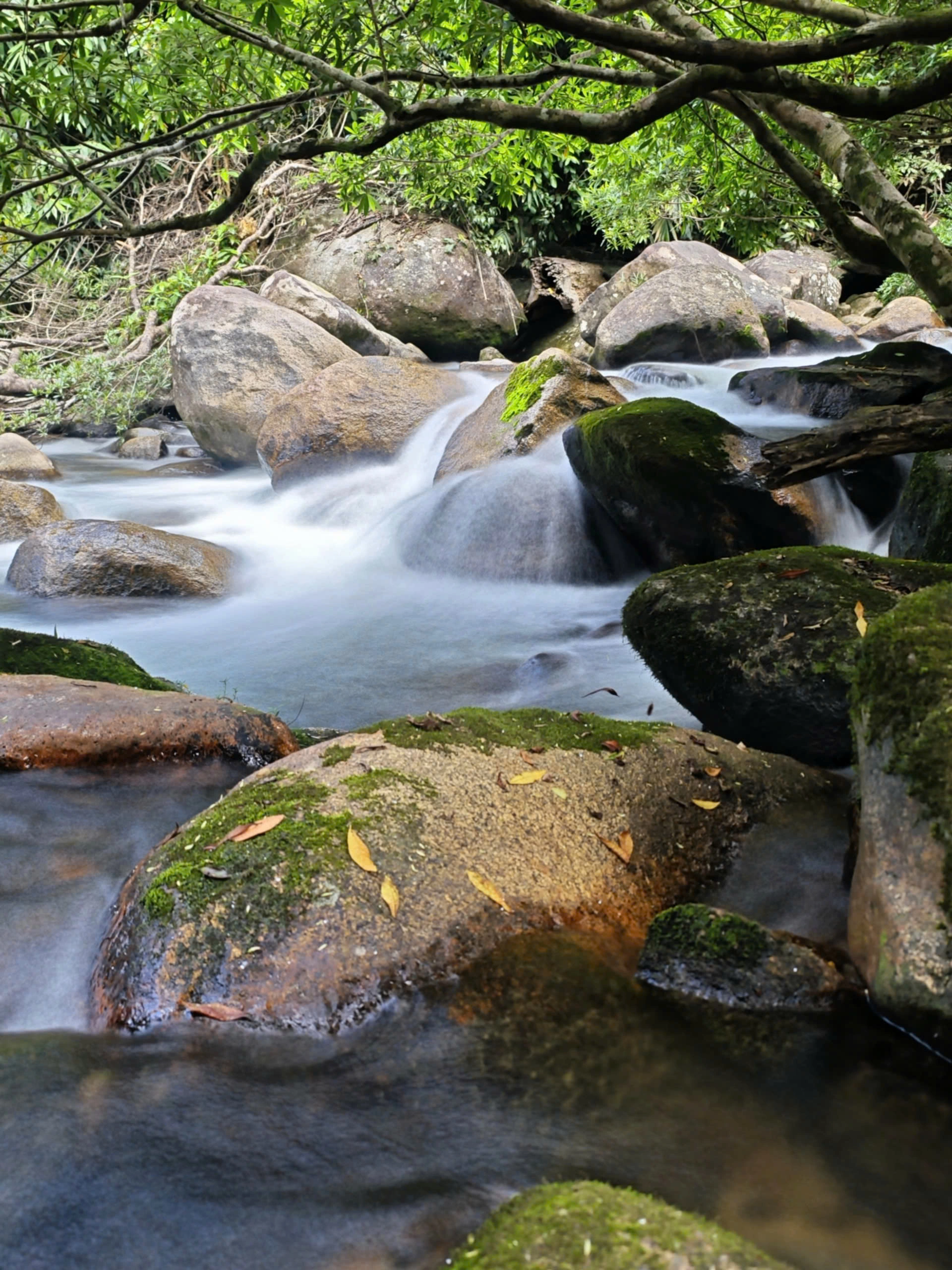 500 m đi đầu tiên, đường đi khá dễ chịu, bằng phẳng. Tuy nhiên, đến đoạn có thác Bay, trekking “vất vả hơn” do phải leo dốc liên tục. Nhưng đoạn đường “không làm khó được anh” do đã có kinh nghiệm leo núi hơn 5 năm. Anh tính toán phân phối sức, khi mệt tìm vị trí an toàn dọc đường để nghỉ ngơi.